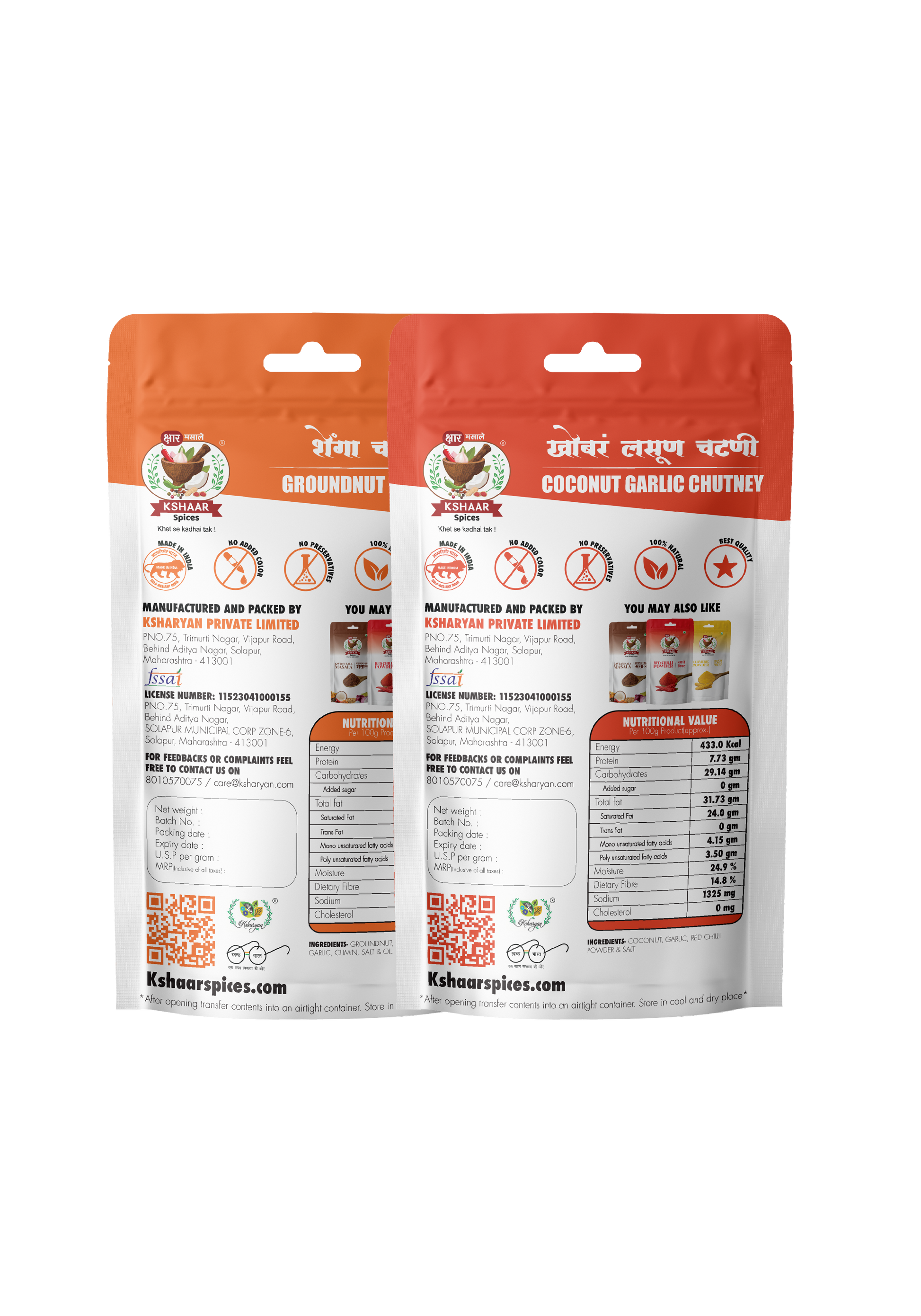 Enjoy bold, authentic flavors with this combo of Coconut Garlic Chutney and Groundnut Chutney (100g each). The Coconut Garlic chutney adds a spicy, garlicky kick to any meal, while the Groundnut chutney delivers a nutty, savory taste perfect for idlis, dosas, and more. Made with premium ingredients and no preservatives — just pure, traditional taste in every spoon!