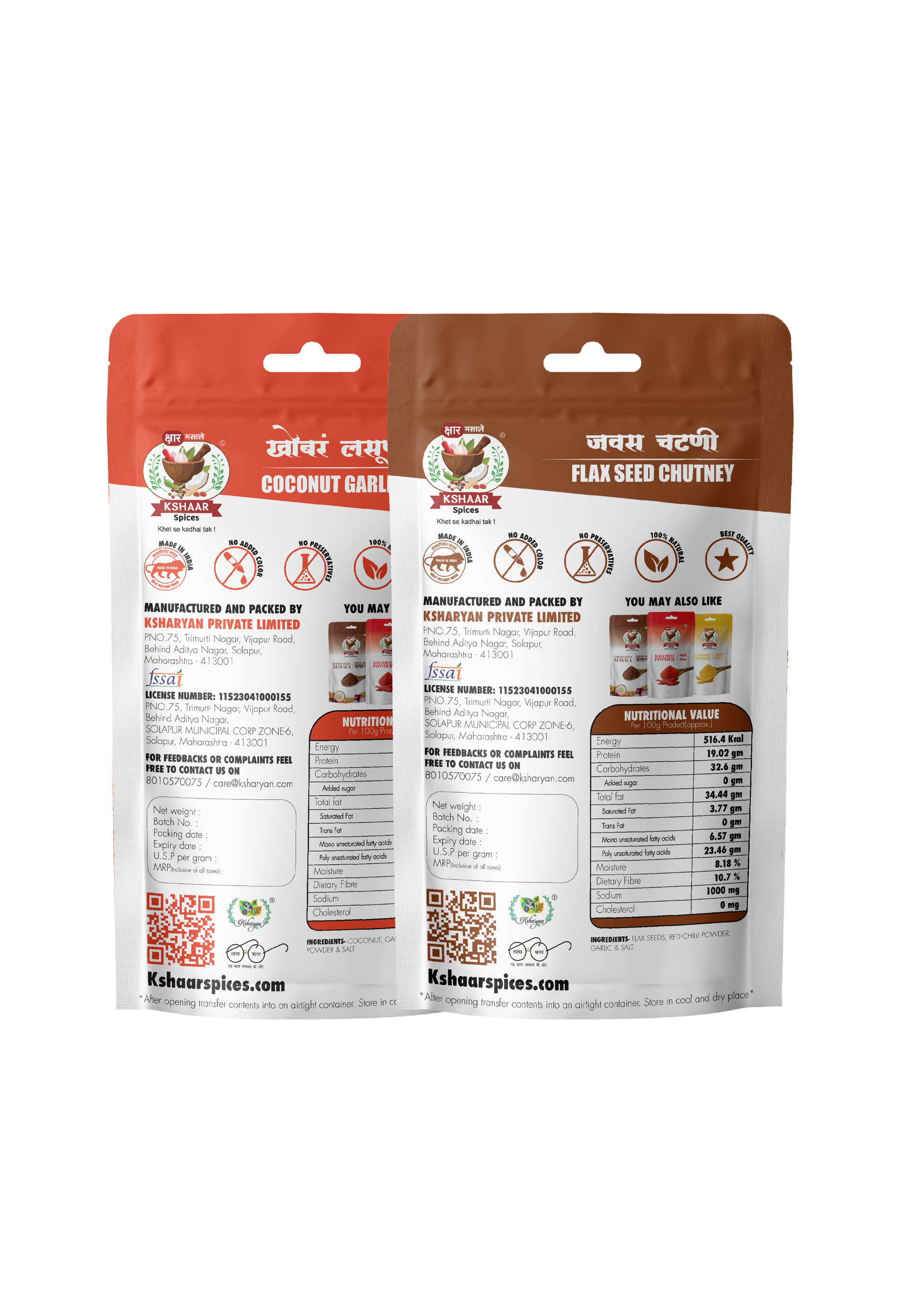 Flaxseed Chutney & Coconut Garlic Chutney Combo (100g each)