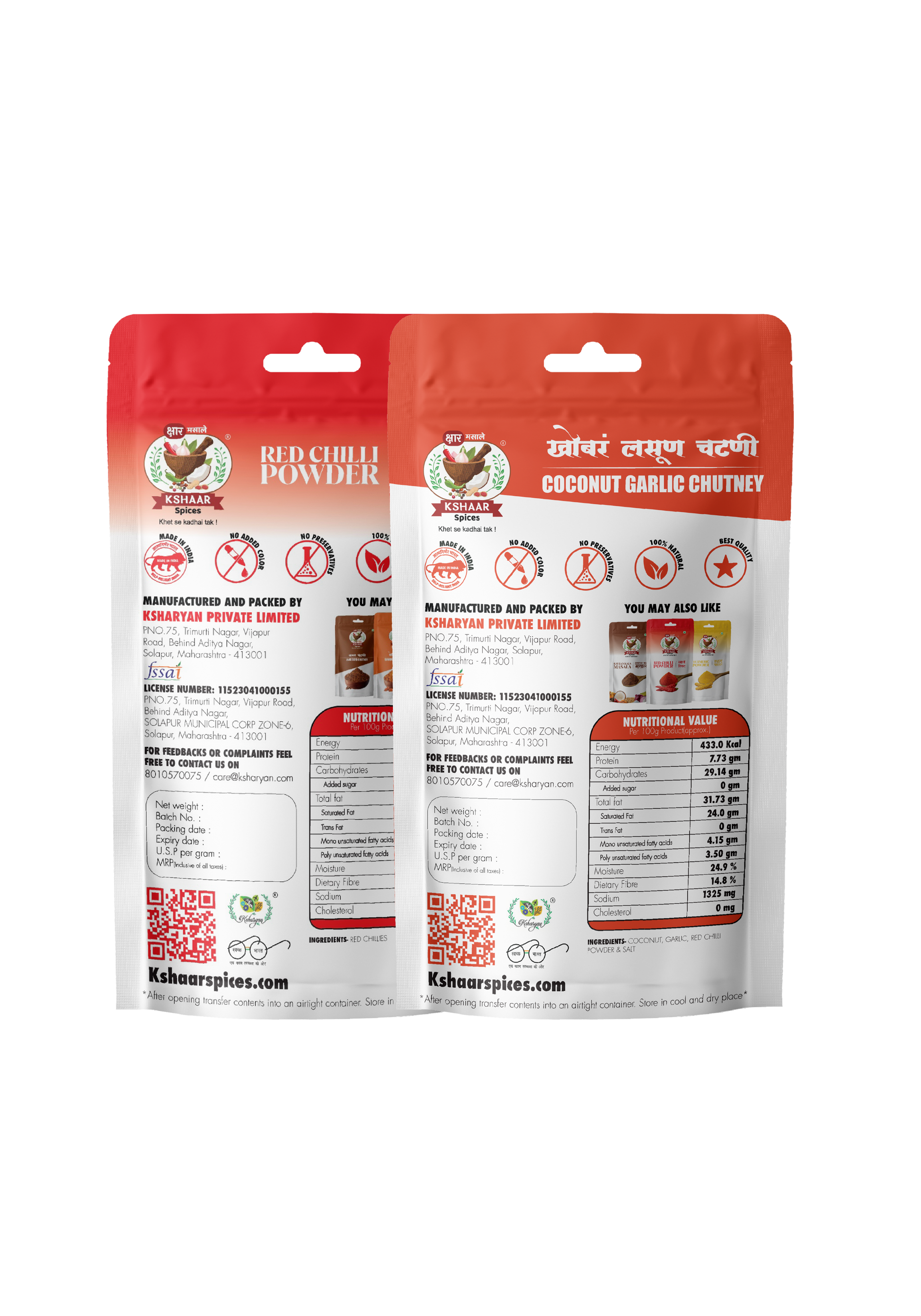 Garlic Coconut Chutney- Coconut, Garlic, Red Chilli Powder & Salt.