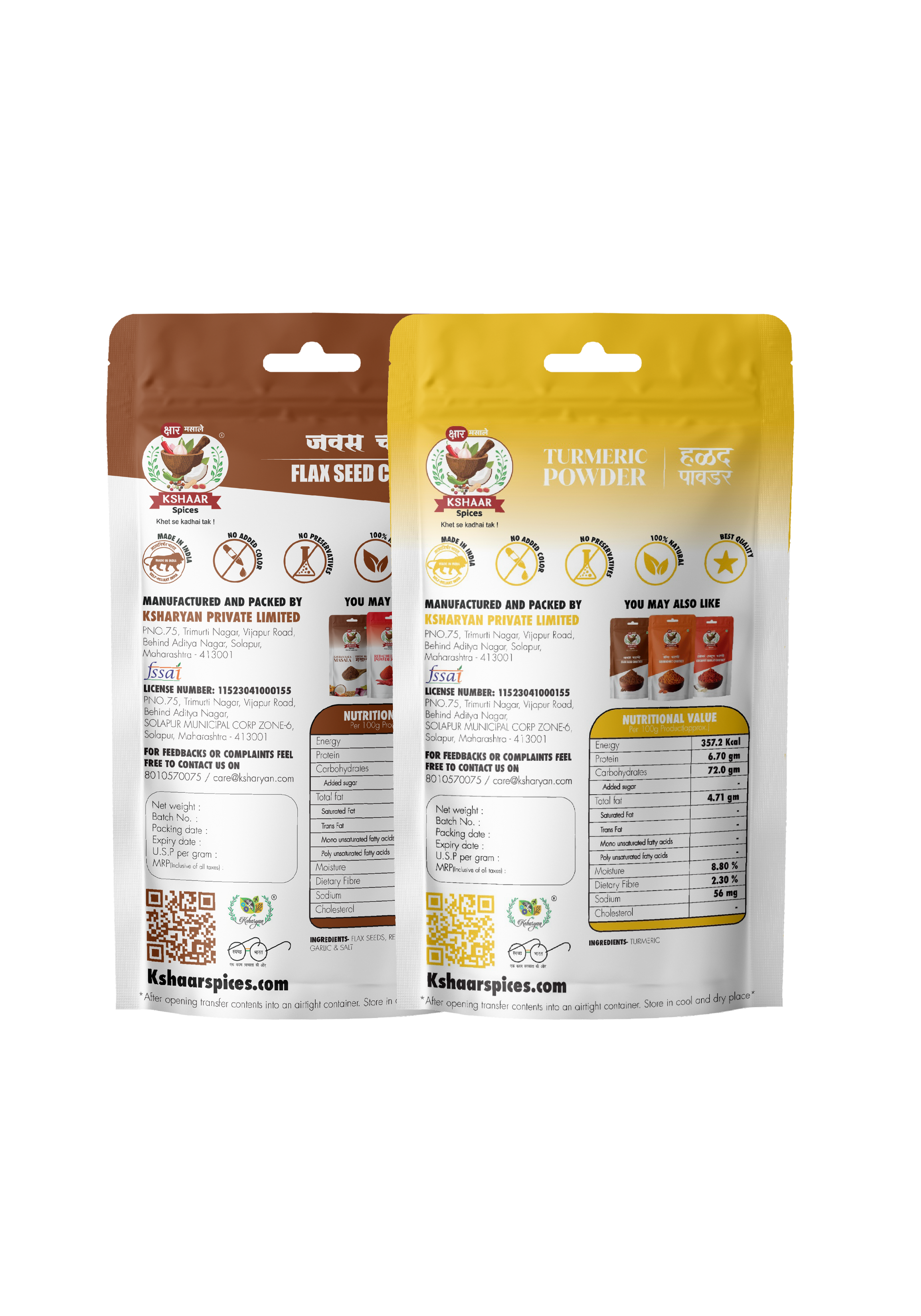 A perfect duo of pure, golden turmeric powder and nutritious flaxseed chutney. While turmeric boosts immunity and adds rich flavor to your dishes, the flaxseed chutney brings a spicy, nutty kick along with Omega-3s and fiber.